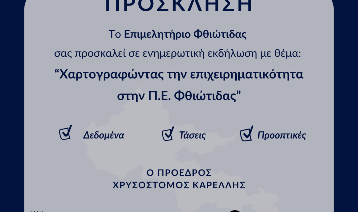 Σας καλωσορίζω στην επίσημη ιστοσελίδα του Επιμελητηρίου Φθιώτιδας — έναν σύγχρονο κόμβο ενημέρωσης και υποστήριξης για τις επιχειρήσεις και τους επαγγελματίες της περιοχής μας.