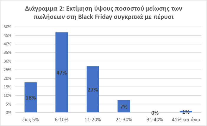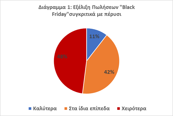 - Επιδείνωση, σε σχέση με την περυσινή “Black Friday”, παρουσίασαν οι πωλήσεις για τις μισές (48%) επιχειρήσεις (Διάγραμμα 1).