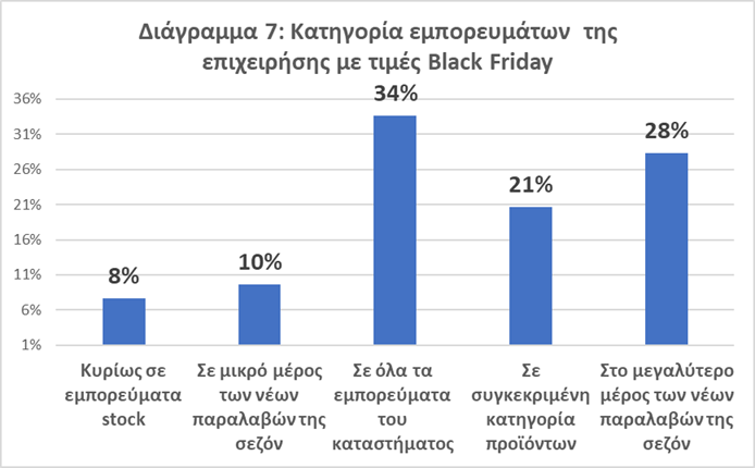 - Ενδεικτικό των πιέσεων στον κλάδο είναι το γεγονός πως μία στις τρεις επιχειρήσεις (34%) υιοθέτησε εκπτώσεις σε όλα τα προϊόντα. Επίσης, το 28% έκανε εκπτώσεις στο μεγαλύτερο μέρος των νέων παραλαβών της σεζόν (Διάγραμμα 7).
