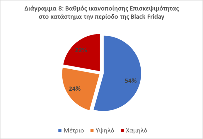 - Η ικανοποίηση αναφορικά με την επισκεψιμότητα στα καταστήματα για τις μισές επιχειρήσεις (54%) κινήθηκε σε χαμηλά επίπεδα (Διάγραμμα 8).