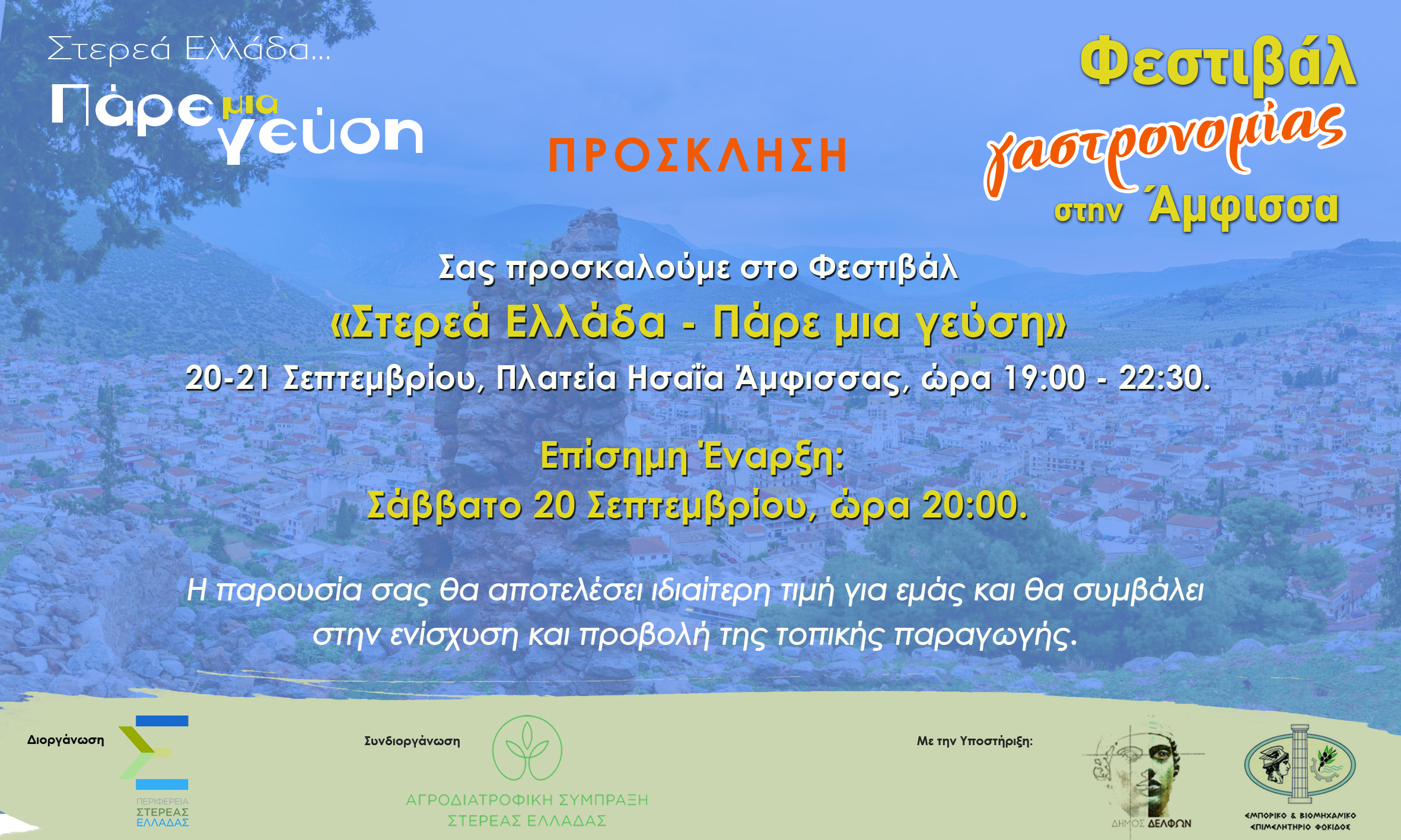 Πρόσκληση στο Φεστιβάλ Γαστρονομίας «Στερεά Ελλάδα – Πάρε μια Γεύση», 20 & 21 Σεπτεμβρίου 2025 στην πλατεία Ησαΐα στην Άμφισσα
