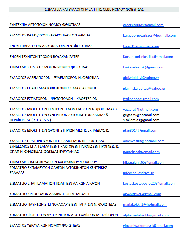 • Σύλλογοι και Σωματεία της ΟΕΒΕ Φθιώτιδας